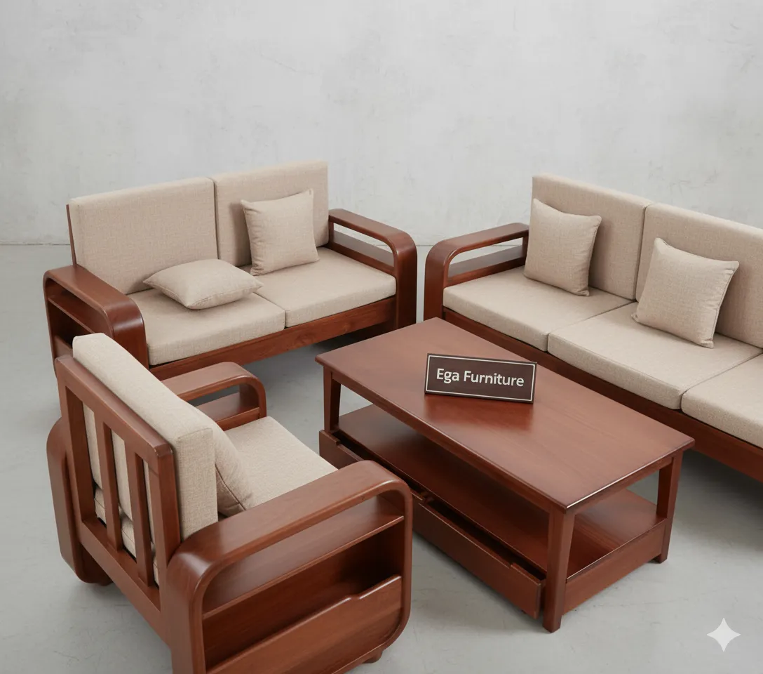 Kursi Tamu Sadewa Telur hadir dengan desain lengkung khas yang elegan dan modern. Terbuat dari full kayu jati pilihan, set ini sudah dilengkapi dengan dudukan busa empuk dan bantal peluk untuk kenyamanan ekstra. Finishing melamin menjadikan tampilannya mengkilap dan awet. Cocok untuk ruang tamu keluarga yang ingin tampil hangat namun tetap berkelas.